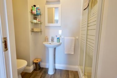 WC, WHB, Electric shower and linoleum flooring